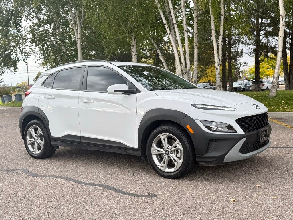 Certified. 2023 Hyundai Kona SEL AWD Lunar White AWD CVT 2.0L I4 DOHC Dual CVVT 28/33 City/Highway MPG
