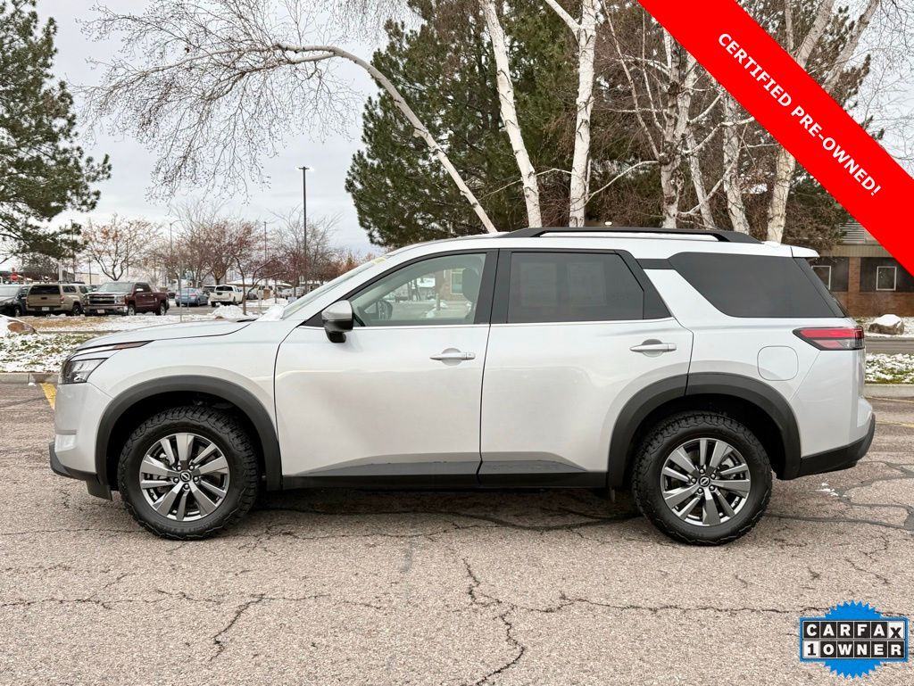 Certified. 2025 Nissan Pathfinder SV 4X4 Brilliant Silver Metallic 4WD 9-Speed Automatic 3.5L V6 DOHC 21/27 City/Highway MPG Odometer is 1793 miles below market average!