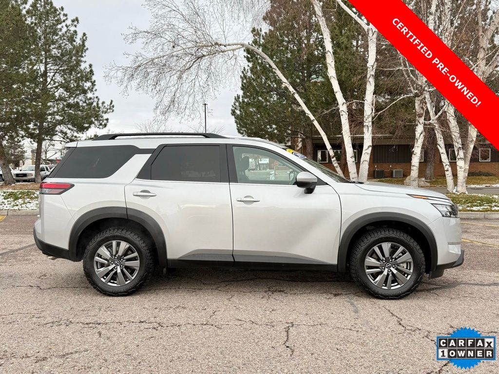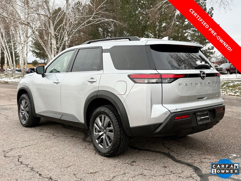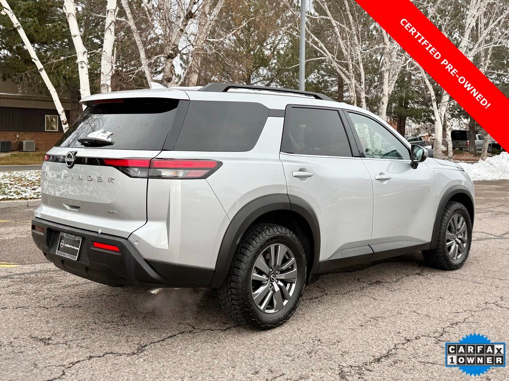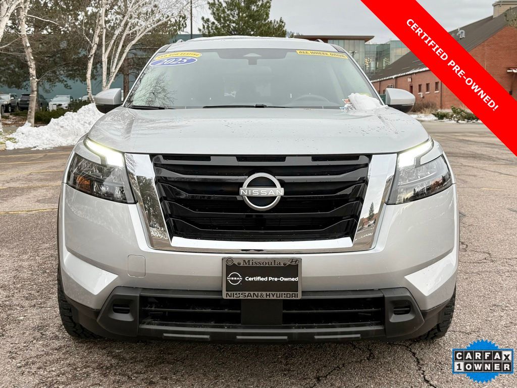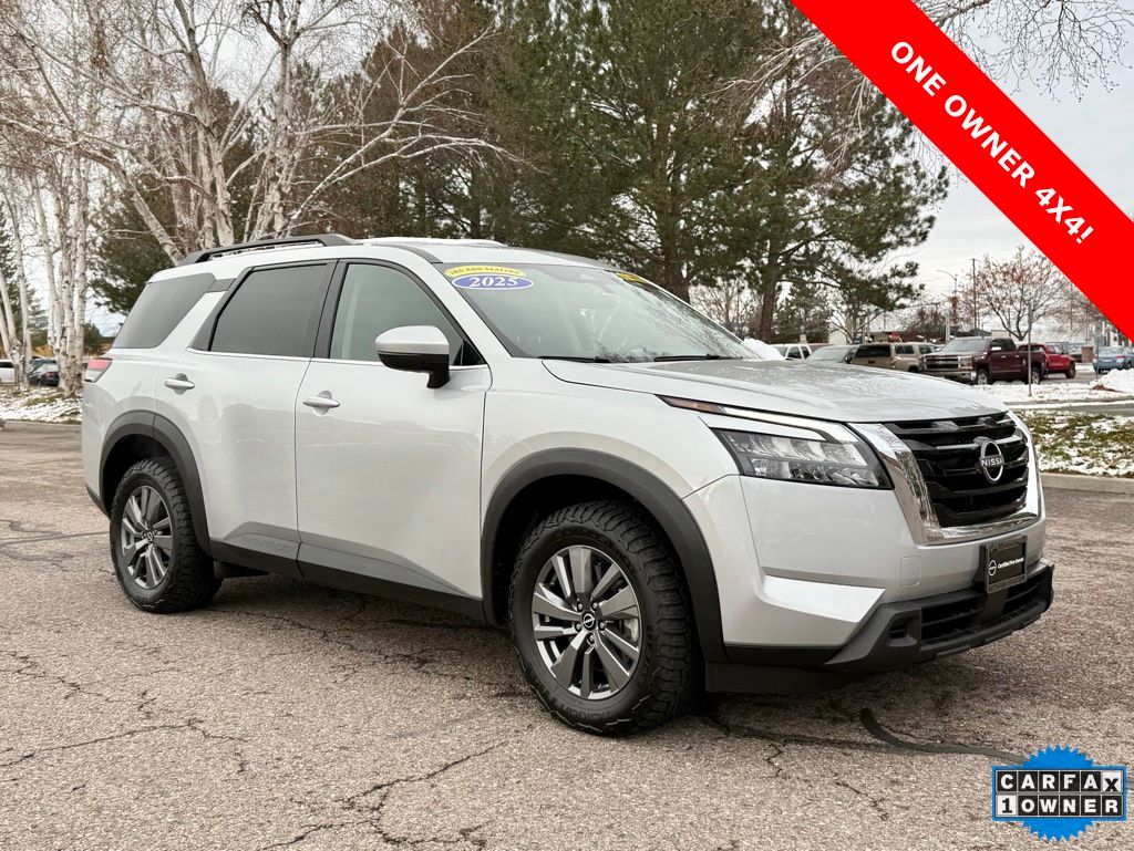 Certified. 2025 Nissan Pathfinder SV 4X4 Brilliant Silver Metallic 4WD 9-Speed Automatic 3.5L V6 DOHC 21/27 City/Highway MPG Odometer is 1793 miles below market average!