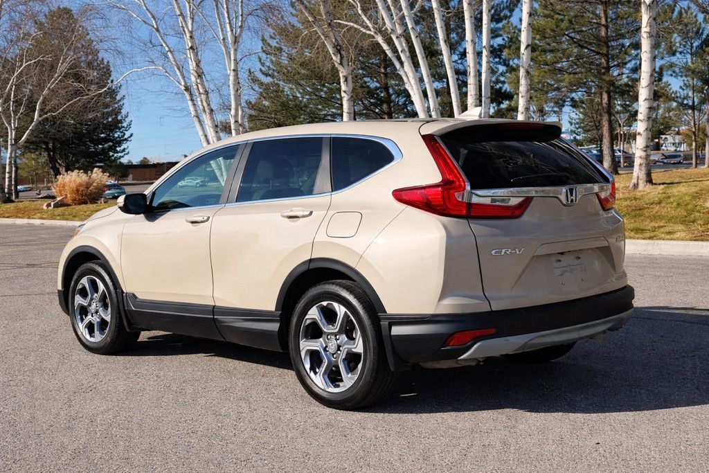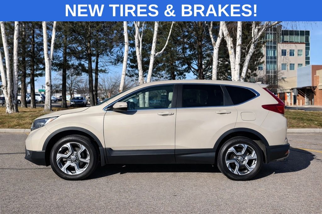 This 2018 Honda CR-V EX-L w/Navigation AWD is a well-equipped and versatile SUV that offers an exceptional driving experience. With its sleek beige exterior, this CR-V is not only stylish but also practical, boasting a range of impressive features that make it the perfect choice for your next adventure.