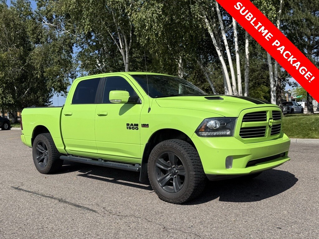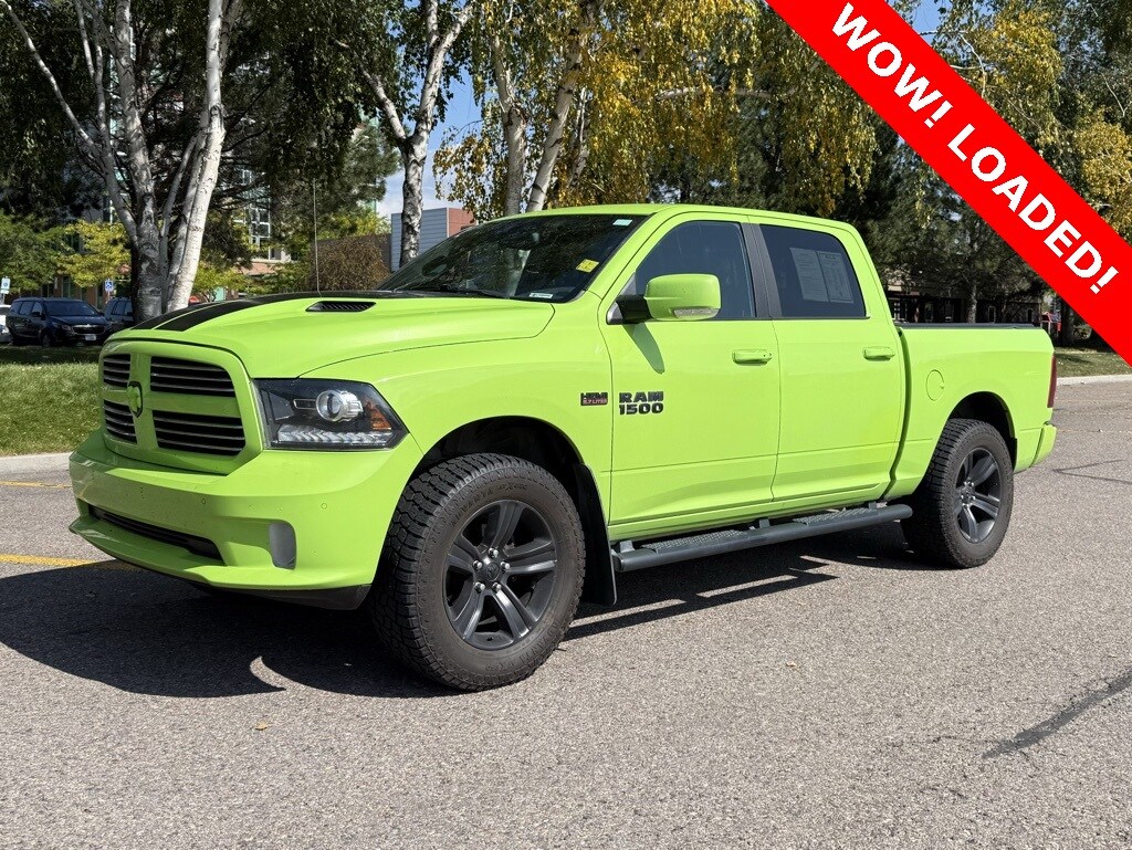LOW MILES!, LOADED!, 115V Auxiliary Power Outlet, 4x4 Flat Black Badge, 8.4" Touchscreen Display, 9 Alpine Speakers w/Subwoofer, Audio Jack Input for Mobile Devices, Auto High Beam Headlamp Control, Automatic temperature control, Black Closeout Trim, Black Ram Head Tailgate Badge, Black Tubular Side Steps, Body Color/Bright Billets Grille, Bucket Seats, Center Hub, Class IV Receiver Hitch, Convenience Group, Delay-off headlights, Dual Rear Exhaust w/Bright Tips, Electronic Stability Control, Flat Black 5.7L Hemi Badge, Flat Black Ram 1500 Badge, Folding Flat Load Floor Storage, Full Length Upgraded Floor Console, Fully automatic headlights, GPS Antenna Input, GPS Navigation, HD Radio, Heated door mirrors, Heated Front Seats, Heated Seats & Wheel Group, Heated Steering Wheel, High Back Seats, Integrated Voice Command w/Bluetooth, Keyless Enter-N-Go, Leather Trimmed Bucket Seats, Media Hub (USB, AUX), MOPAR Sport Performance Hood Decal, ParkView Rear Back-Up Camera, Power 10-Way Driver & 6-Way Passenger Seats, Power Lumbar Adjust, Power Sunroof, Premium Sound Group, Quick Order Package 26L Sport, Radio: Uconnect 3C Nav w/8.4" Display, Rain Sensitive Windshield Wipers, Rear 60/40 Split Folding Seat, Remote keyless entry, Remote Proximity Keyless Entry, Remote USB Port, SIRIUSXM Satellite Radio, SIRIUSXM Traffic, SiriusXM Travel Link, Sport Performance Hood, Spray In Bedliner, Steering wheel mounted audio controls, Sublime Green Sport Package (DISC), Traction control, Uconnect Access, Ventilated Front Seats, Wheels: 20" x 9" Semi-Gloss Black Aluminum. Convenience Group (Auto High Beam Headlamp Control, Keyless Enter-N-Go, Rain Sensitive Windshield Wipers, and Remote Proximity Keyless Entry), Heated Seats & Wheel Group, Premium Sound Group (9 Alpine Speakers w/Subwoofer), Quick Order Package 26L Sport (Dual Rear Exhaust w/Bright Tips), Sublime Green Sport Package (DISC) (4x4 Flat Black Badge, Black Closeout Trim, Black Ram Head Tailgate Badge, Body Color/Bright Billets Grille, Bucket Seats, Center Hub, Flat Black 5.7L Hemi Badge, Flat Black Ram 1500 Badge, Folding Flat Load Floor Storage, Full Length Upgraded Floor Console, High Back Seats, MOPAR Sport Performance Hood Decal, Power Lumbar Adjust, Rear 60/40 Split Folding Seat, Sport Performance Hood, and Wheels: 20" x 9" Semi-Gloss Black Aluminum), 115V Auxiliary Power Outlet, 8.4" Touchscreen Display, Audio Jack Input for Mobile Devices, Automatic temperature control, Black Tubular Side Steps, Class IV Receiver Hitch, Delay-off headlights, Electronic Stability Control, Fully automatic headlights, GPS Antenna Input, GPS Navigation, HD Radio, Heated door mirrors, Heated Front Seats, Heated Steering Wheel, Integrated Voice Command w/Bluetooth, Leather Trimmed Bucket Seats, Media Hub (USB, AUX), ParkView Rear Back-Up Camera, Power 10-Way Driver & 6-Way Passenger Seats, Power Sunroof, Radio: Uconnect 3C Nav w/8.4" Display, Remote keyless entry, Remote USB Port, SIRIUSXM Satellite Radio, SIRIUSXM Traffic, SiriusXM Travel Link, Spray In Bedliner, Steering wheel mounted audio controls, Traction control, Uconnect Access, Ventilated Front Seats, 3.21 Rear Axle Ratio, 4-Wheel Disc Brakes, ABS brakes, Active Grille Shutters, Adjustable pedals, Air Conditioning, AM/FM radio, Auto-dimming door mirrors, Auto-dimming Rear-View mirror, Brake assist, Bright Rotary Shifter, Bumpers: body-color, Cloth Bucket Seats, Compass, Driver door bin, Driver vanity mirror, Dual front impact airbags, Dual front side impact airbags, Electronic Shift, Electronically Controlled Throttle, Emergency communication system: Uconnect Access, Front anti-roll bar, Front Bucket Seats, Front Center Armrest w/Storage, Front dual zone A/C, Front fog lights, Front reading lights, Front wheel independent suspension, Garage door transmitter, Heavy-Duty Engine Cooling, Illuminated entry, Leather steering