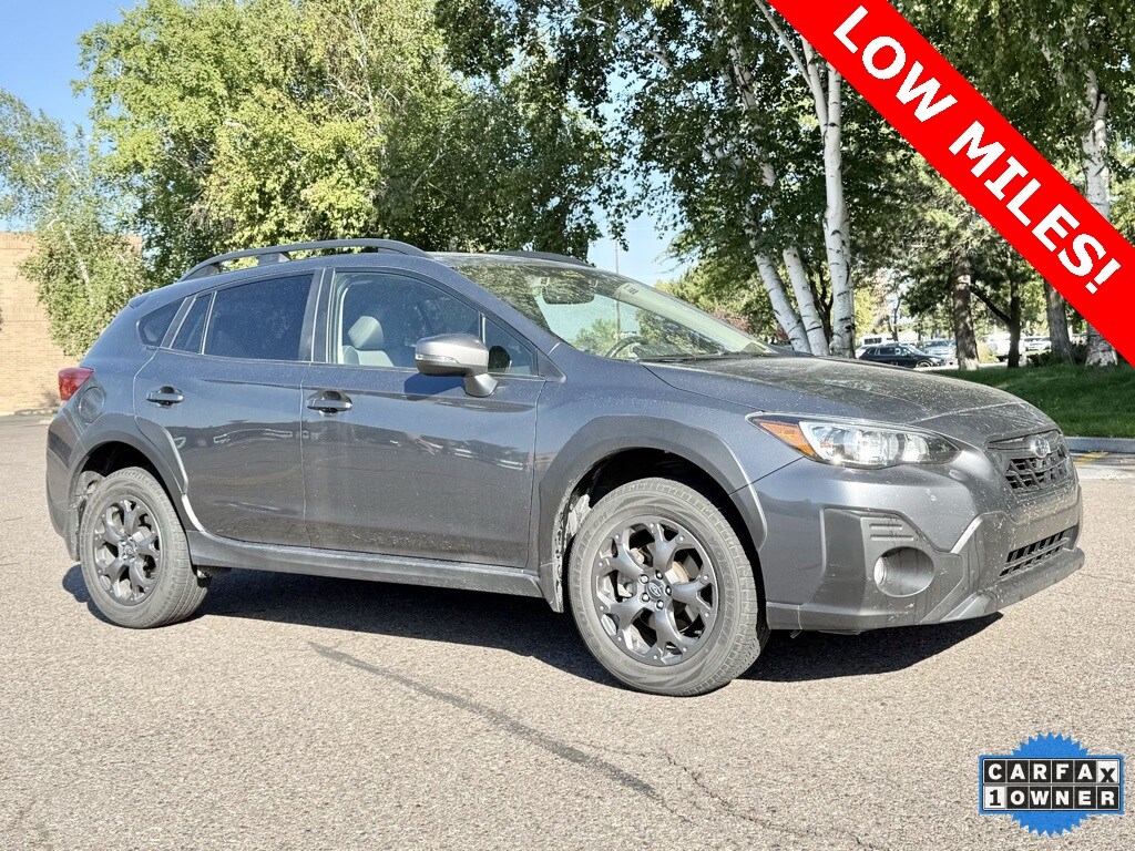 LOW MILES!, Carfax One Owner, Automatic temperature control, Blind Spot Detection (BSD), Electronic Stability Control, Exterior Parking Camera Rear, Fully automatic headlights, Heated door mirrors, Heated Front Bucket Seats, Moonroof Package, Power Moonroof, Radio: Subaru STARLINK 8.0" Multimedia Plus System, Remote keyless entry, STARLINK/Apple CarPlay/Android Auto, StarTex Upholstery, Steering wheel mounted audio controls, Traction control. Moonroof Package (Blind Spot Detection (BSD), Power Moonroof, and Radio: Subaru STARLINK 8.0" Multimedia Plus System), Automatic temperature control, Electronic Stability Control, Exterior Parking Camera Rear, Fully automatic headlights, Heated door mirrors, Heated Front Bucket Seats, Remote keyless entry, STARLINK/Apple CarPlay/Android Auto, StarTex Upholstery, Steering wheel mounted audio controls, Traction control, 4-Wheel Disc Brakes, 6 Speakers, ABS brakes, Air Conditioning, AM/FM radio: SiriusXM, Anti-whiplash front head restraints, Auto-Dimming Exterior Mirror w/Approach Light, Auto-Dimming Mirror w/Compass & HomeLink, Brake assist, Bumpers: body-color, Cargo Net, CD player, Driver door bin, Driver vanity mirror, Dual front impact airbags, Dual front side impact airbags, Emergency communication system: STARLINK Safety and Security (Subscription Required), Four wheel independent suspension, Front anti-roll bar, Front Center Armrest, Front fog lights, Front reading lights, Illuminated entry, Knee airbag, Leather Shift Knob, Low tire pressure warning, Map & Dome Lights LED Upgrade, Occupant sensing airbag, Outside temperature display, Overhead airbag, Overhead console, Panic alarm, Passenger door bin, Passenger vanity mirror, Power door mirrors, Power steering, Power windows, Radio data system, Rear anti-roll bar, Rear window defroster, Rear window wiper, Security system, Speed control, Speed-sensing steering, Splash Guards, Split folding rear seat, Spoiler, Tachometer, Telescoping steering wheel, Tilt steering wheel, Trip computer, Turn signal indicator mirrors, Variably intermittent wipers, and Wheels: 17" x 7.0J Alloy Dark Gray Finish.
